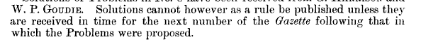 I was browsing old math journals a few days ago and got caught up in looking at puzzles/challenging problems sent in by professors to The Mathematical Gazette (the original publication of the Mathematical Association).