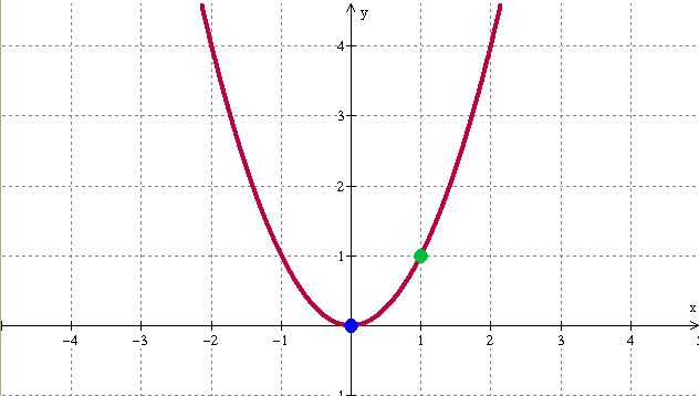 Let’s say we have the graph of y=x^2 and we want to find vectors normal to the curve at (0,0) and (1,1) (the blue and green dots).