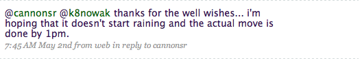 It is now May 10th. I have made 741 tweets. I follow 71 people. And I check twitter multiple times a day.