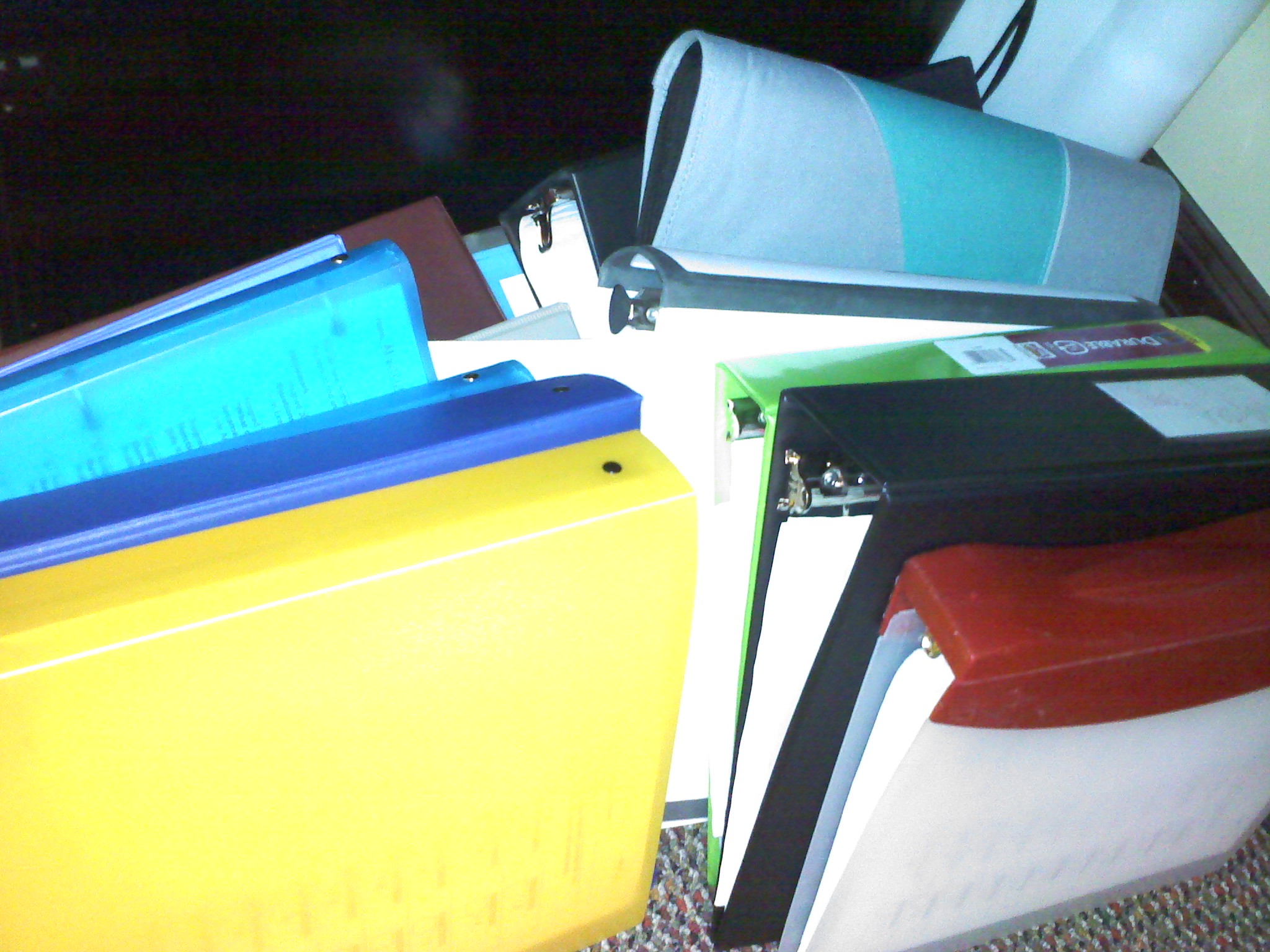 Each time I collect them, I get a nice stack of binders that I store under my desk, like I had today: