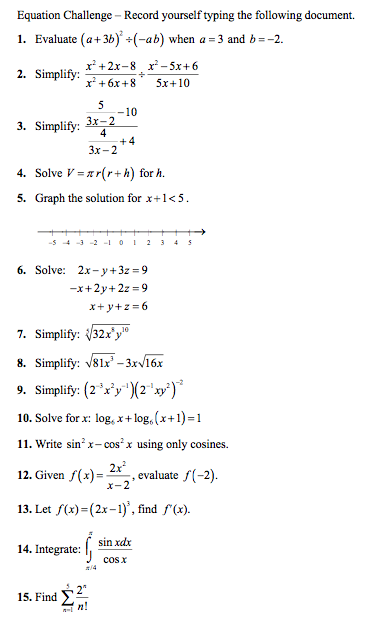 Maria Andersen blogged and tweeted about an Equation Challenge — asking people to type out a set of 15 math questions and asking them to record it.