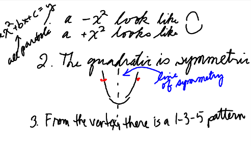 They get the right answers, for the most part. The ones who aren’t getting it right are having trouble using their calculator to enter in their quadratic formula result. I want to move on, because of time, so I tell them that we can go over calculator questions in the next class but I want them to put those aside so we can see the bigger picture now.