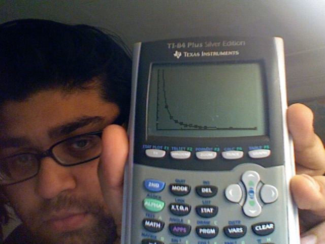 And since they are interested in N and the error, they enter those values into lists in their calculator. Looking at a graph for low N values versus the error, they see this on their calculators: