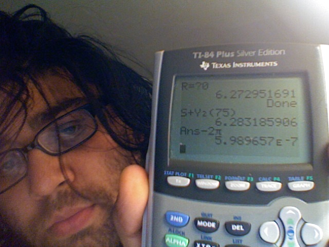 Being a bit rusty at both the calculus and the TI-coding, I’m almost following to the end but not 100%. It looks to me like your TI program is taking the Reimann sum of either the rectangles below the fn, or the rectangles above, but not the average of both. Have you tried making it average the two? Would that give similar results to adding the error function you’ve generated? Or is this error fn behaving much more awesomely than that?