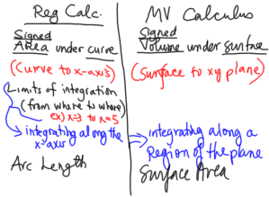 It was awesome. They immediately picked up on the fact that it would give you (signed) volume. That was great. They realized the xy-plane was equivalent to the x-axis. With some prompting, they understood we weren’t integrating over a 1D line (like between x=2 and x=5 on the x-axis), but now on a 2D region. (Of course, a little later, I explained that they could integrate over a line, but they’d get an area.)