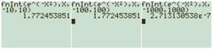 There is a neat way to get the TI calculator’s fnInt() routine to do doubly infinite integrals like yours: just make the substitution x=tan(u). Your integral then becomes something like fnInt(e^(-tan(X)²)/cos(X)²,X,-π/2,π/2).