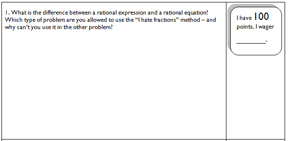 (If you try this, you have to make sure that students know NOT to skip ahead… everyone is working on one problem at a time. Then you go over the problem, and THEN everyone starts the next problem.)