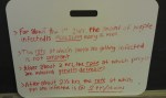 The next day, at the start of class, I assign students to work in groups of 3 (with different people than their partners the previous day). They are asked to take a giant whiteboard and: