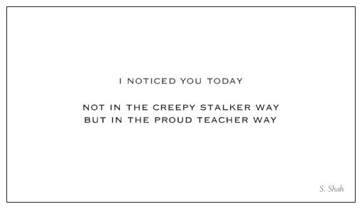 Lol! I really dig the “I noticed you today.” Always feel like saying that but worry I’ll get the “EWWW Mr. Carby!” look.