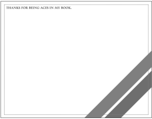 The card is not my favorite, because I could have done a much better job and come up with a much better concept if I had more time. But here’s the thing. I always keep blank fancy cards at my desk to write thank you notes to people who have helped me out in small and large ways. Unfortunately, I forget I have them, so it hasn’t become normalized behavior. But since I will have fancy personalized cards, I think I will be more excited to use them and so I have high hopes this could become a thing that I do, instead of just intend on doing.