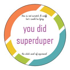 Now that I’m looking at these, I’m wondering if I couldn’t make better stickers which weren’t all about achievement. But maybe a sticker for someone who just bombed something… something to make them smile, and feel encouraged. Or for someone who clearly put a ton of effort into something even if they didn’t do superduper. Anyway, thoughts for the future.