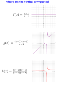 Finally, to talk about vertical asymptotes, I show and talk about why a vertical asymptote occurs at