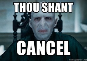 I forbid the use of the word “cancel.” It is like “Voldemort.” Verboten.