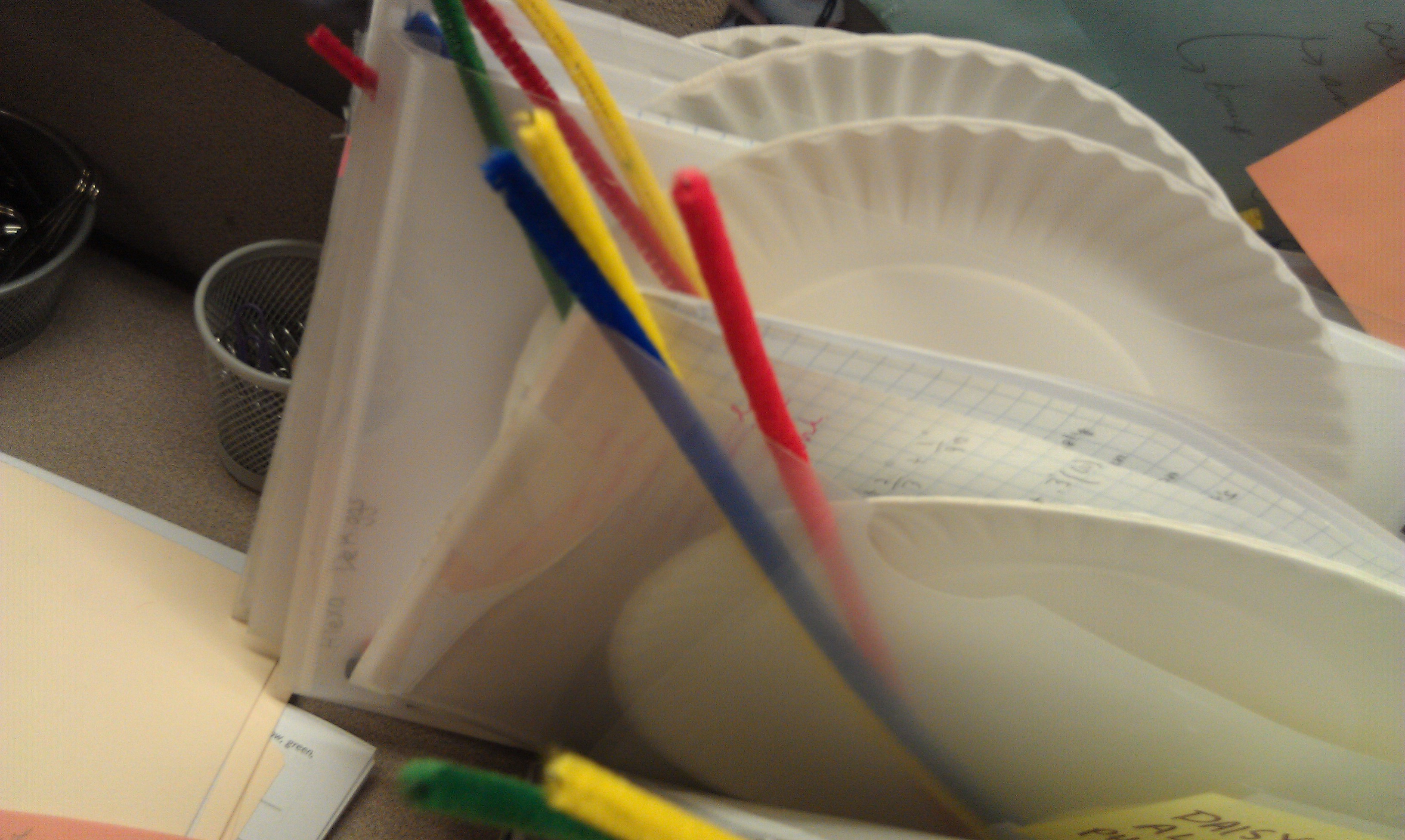 8:00pm: I hear a ding indicating a new message in my inbox. Then a second. I see I’ve gotten response emails from both sets of parents, and I reply back to them. Crafting emails takes time. Quickly, I put the finishing touches on planning precalculus, including putting the pipe cleaners and paper plates in folders for students to have quick and easy access. Taking time to organize myself now means less wasted time in class.