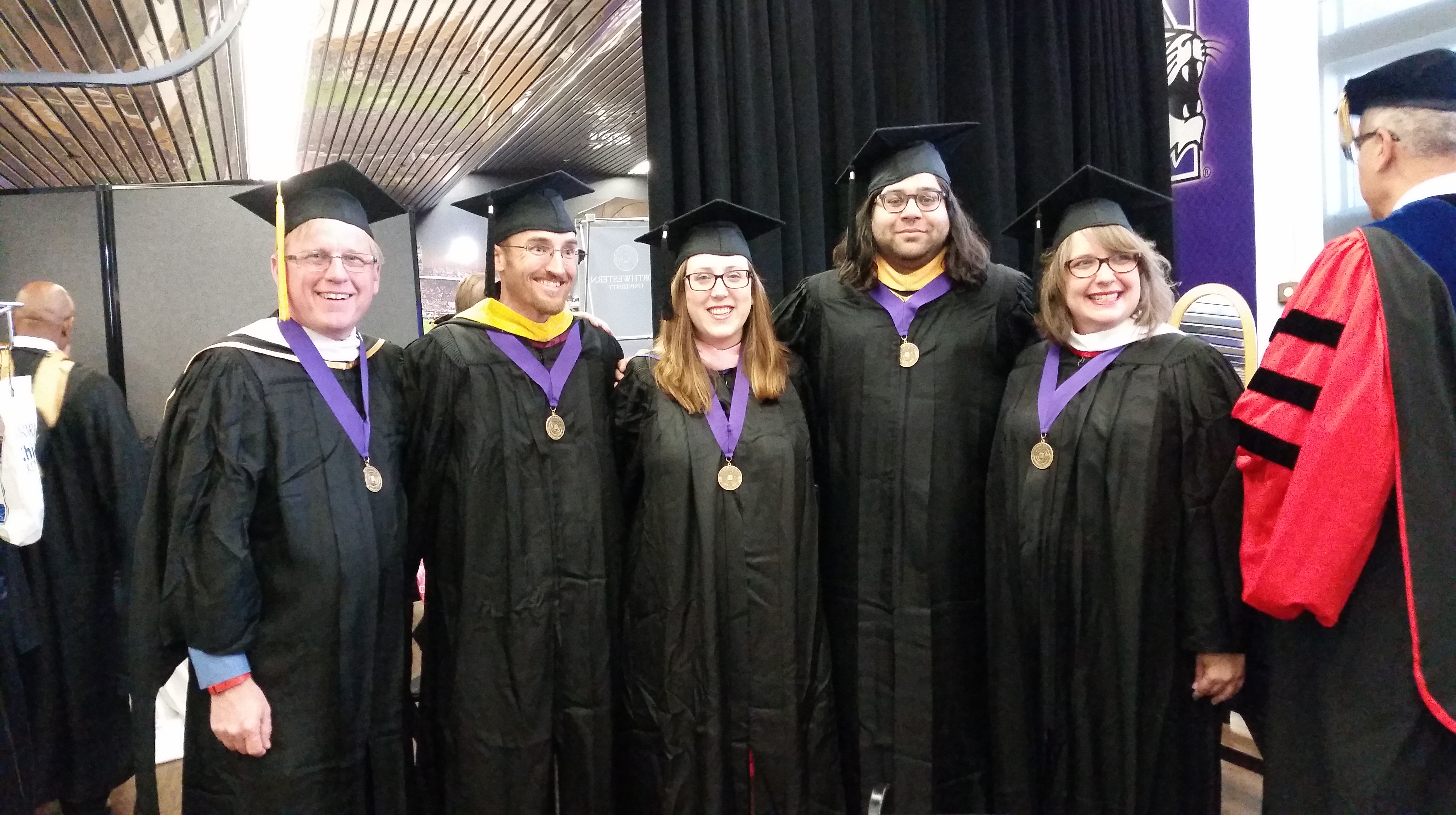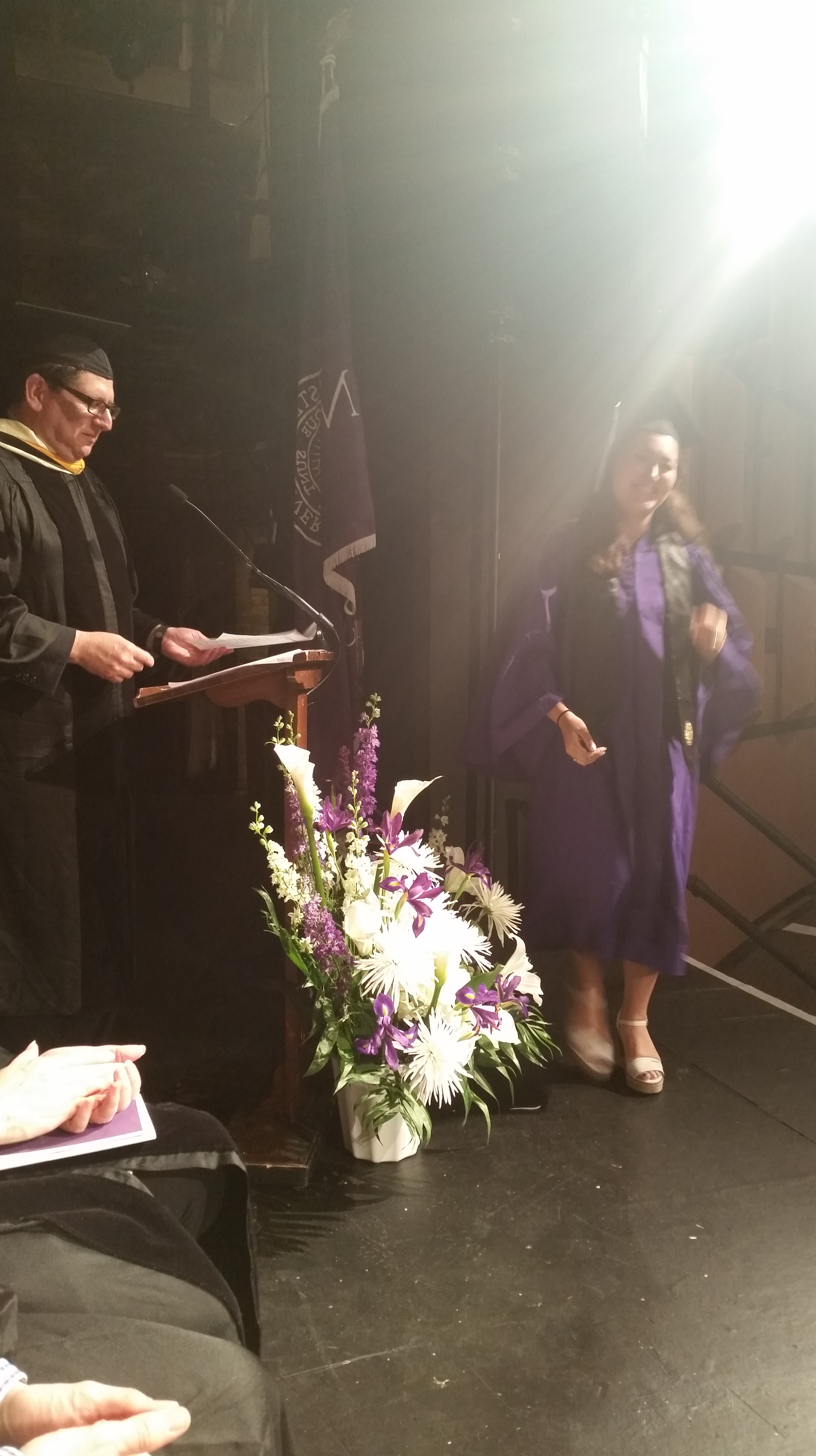 • I was invited to go to the “mini-graduation” for the School of Social Policy to see my former student get called on stage and graduate. (But then I was told I was sitting on stage, front and center.) It was so exciting when her name was called that I snuck out my phone to try to get a good photo of it happening!