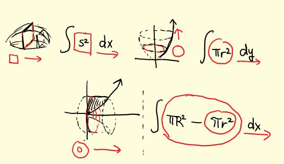 BD: It’s easy to get caught up in using the book’s sequencing of content, but thinking about big ideas and enduring understandings can help rearrange everything else to help promote those enduring understandings above everything else. For example, next year we will explore solids of a known cross section before solids of revolution, because the enduring understanding in solids is that if you stack up a bunch of infinitely thin cross-sectional areas, you can create a solid. Solids of revolution are really solids of known cross section too, just with circular cross sections – the revolution is just a way to construct the solid, not the main idea behind the integral. By talking about solids of known cross section first, it might be a good way to highlight the deeper idea without getting caught up in a multitude of smaller ones.