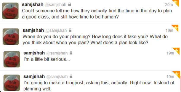 Approximately Normal has advice for student teachers, which I think is superuberamazeballs… even though it is for student teachers, the ultimate message about understanding hidden norms in the classroom is key. And figuring out how to make your own (hidden) norms is important. You are cultivating an atmosphere, a small culture. You should think intentionally about the culture you want.