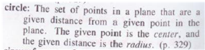 Circle: “A circle is a closed figure where all the points are an equal distance from the epicenter, and starts and ends at the same point.”