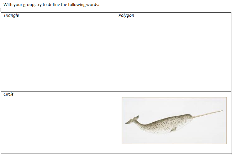 This is actually really challenging. I mean: you yourself, try to define a triangle without looking it up, or even more challenging, a polygon. Before starting, groups were told that other groups would try to find fault with their definitions, so they should be as specific and clear as possible.