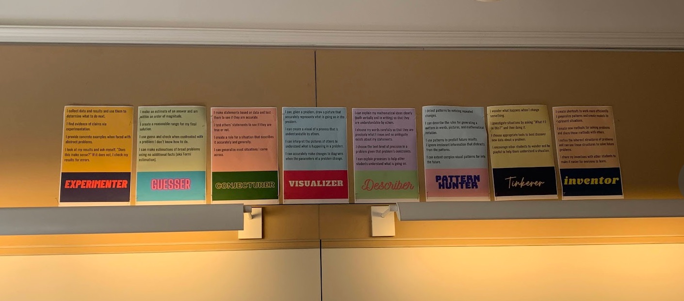Of course, if you’re a math teacher, you know there are a lot of lists of mathematical habits of mind. We agreed to use the ones James had already been using. But there are many alternative or additional things we could have included.