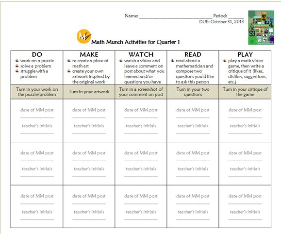 I really like the idea, but for me personally, it turned into busy work. Not because I find it boring but because I have so much other work that it gets pushed back towards the end of my load. I would like to spend more time on them, so possibly have it on top of the nightly work for math, designate a night specifically to explore math.