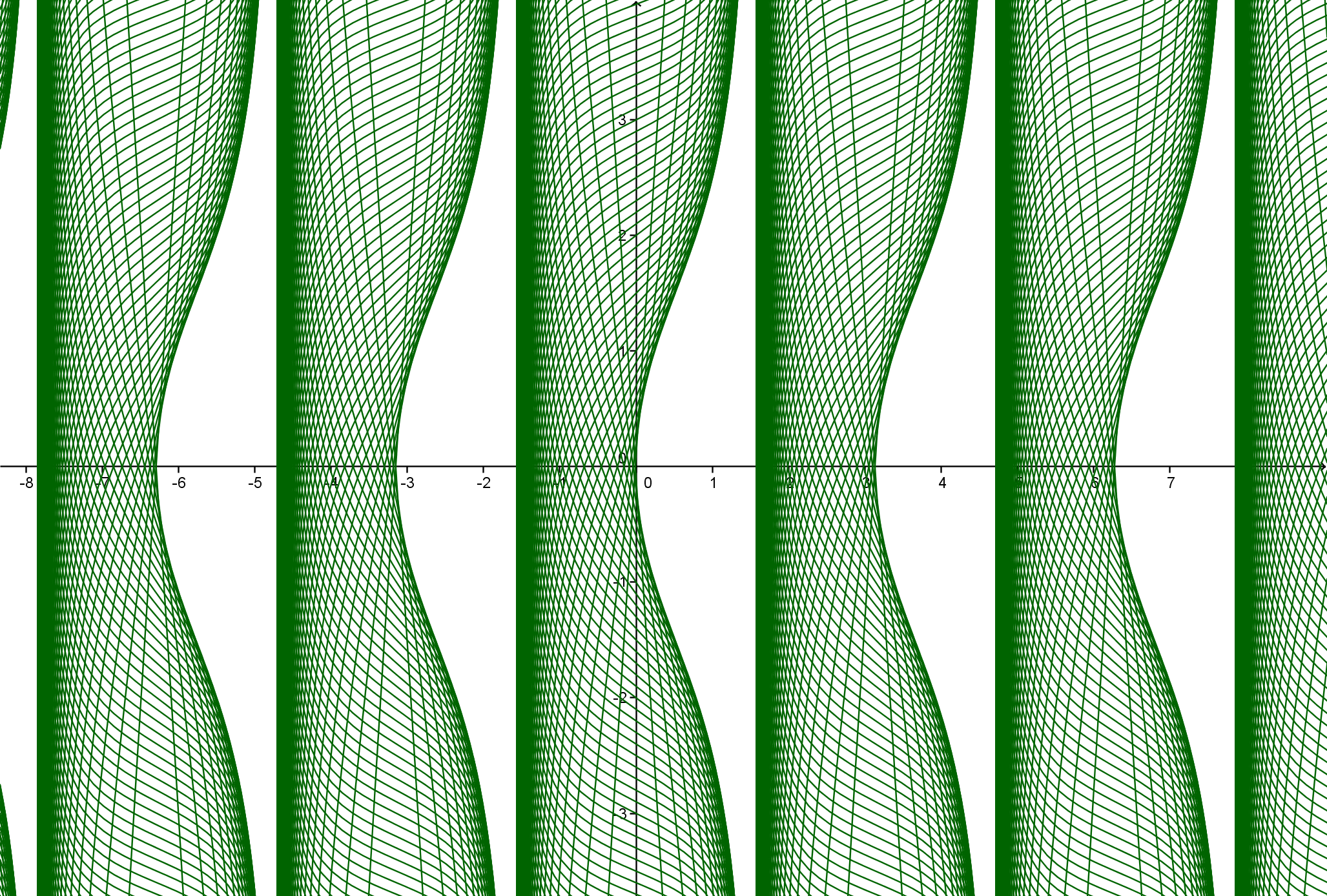 You know what else is cool? You can just plot individual curves instead of the family of curves, and vary the parameter using a slider. Geogebra is awesome. Look at this .gif I created which shows the curves for the graph of the tangent function above… It really makes plain what’s going on… (click the image to see the .gif animate!)